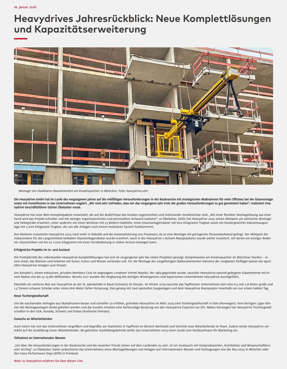 Die Fachzeitschrift Bauelemente Bau berichtet über unser erfolgreiches Geschäftsjahr 2025.